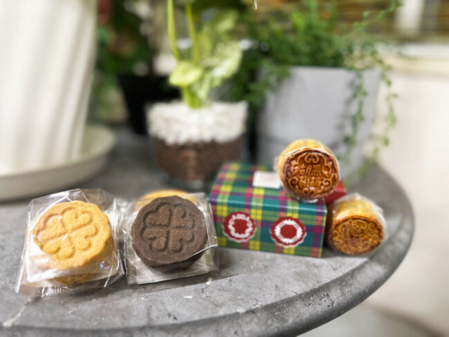 食べるときにバターの良い香りがふわっと香り、自家製キャラメルとバタークリームの相性が良く、中にくるみが入っているのもポイント高し。洋風月餅という品名ではあるが、外はしっとりめのクッキー生地でさくほろ。最高。コーヒーにも紅茶にも合う。