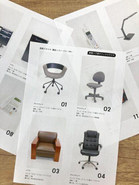 その後、サイズ計測や購入先、使用可能なものなのかどうか確認しながら、誰が見ても分かりやすい形になるよう項目を調整しています。
