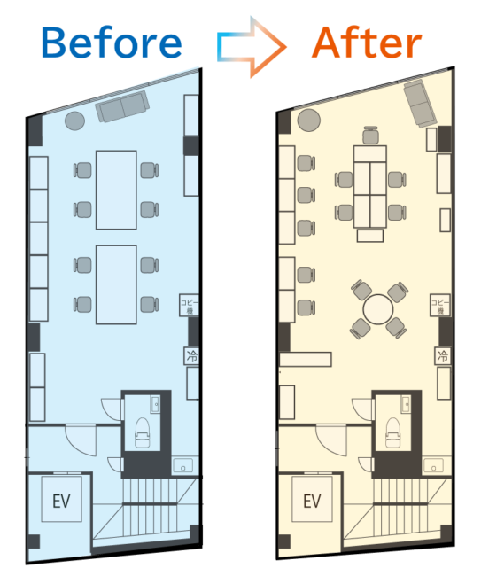 そこで今回のリニューアルでは個々のデスクに変更し、レイアウトも自由に組み替えていただけるようにしております🧩