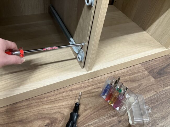 引き出しと扉も、すぐにつけられるだろうと考えておりました。甘かった。