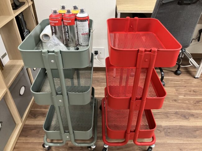 ワゴンを赤に塗るため、人生初カラーラックでの色塗りでしたが…