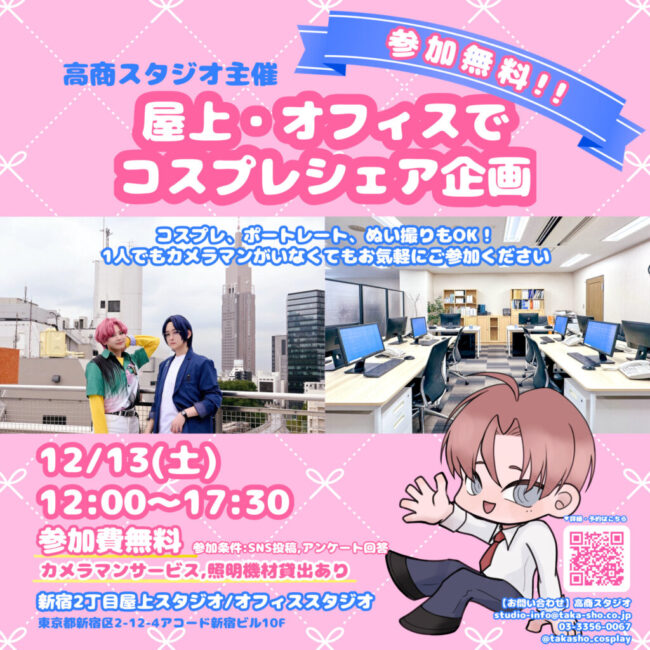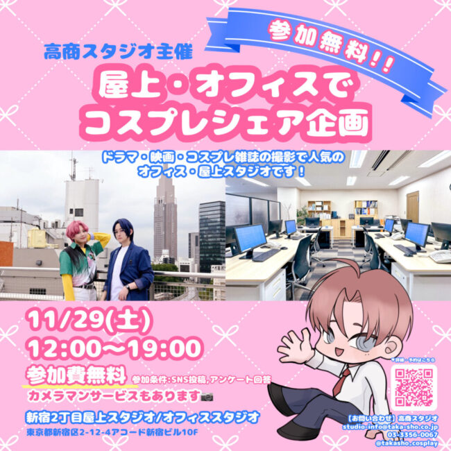 コスプレシェア企画には高商スタジオのスタッフによるカメラマンサービスもございます。
