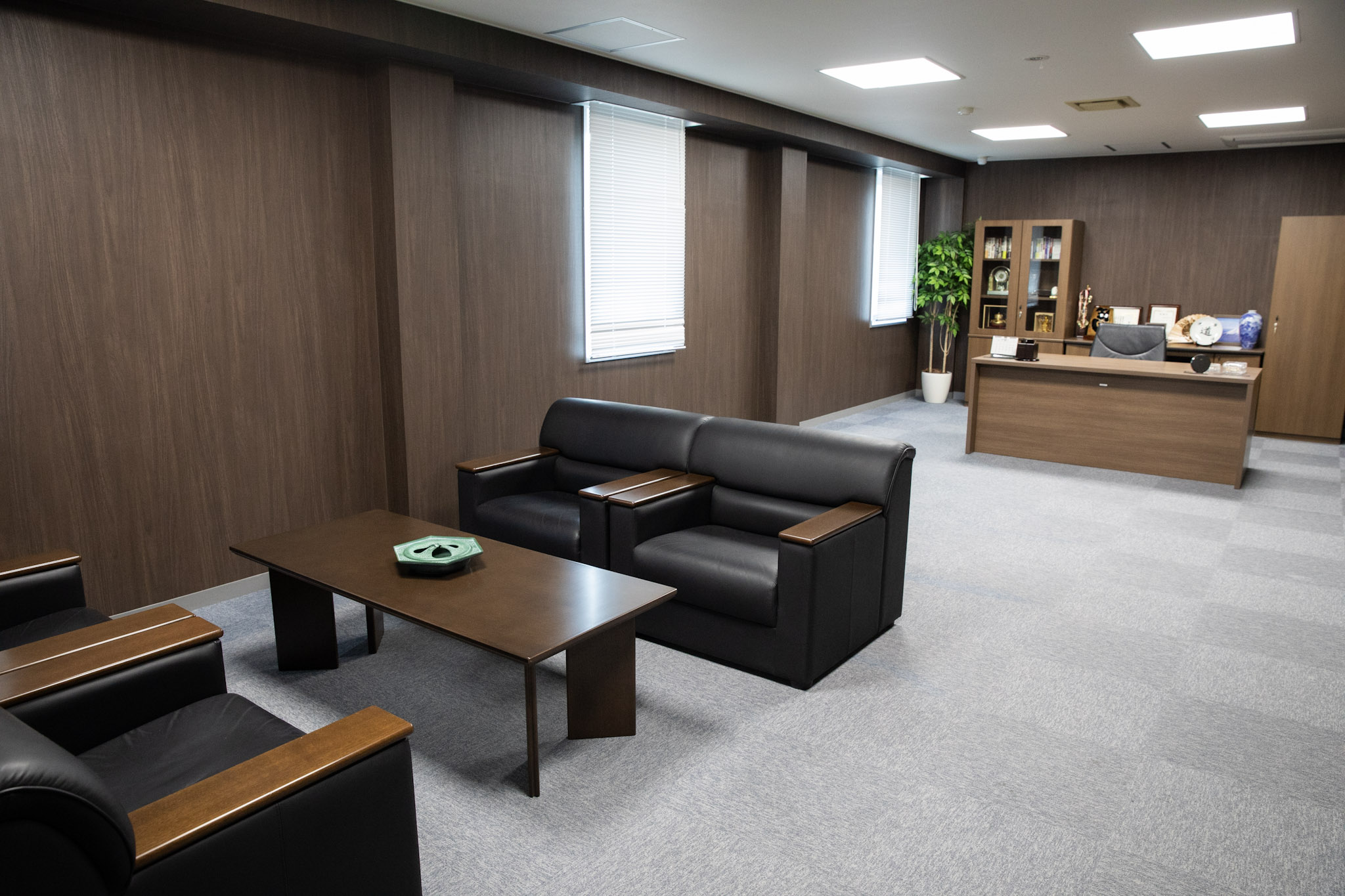 モダンとクラシックの2パターンのオフィスと社長室にガラス張りの会議室、