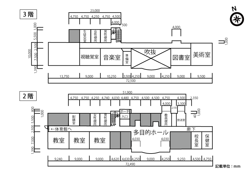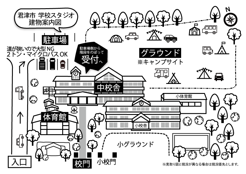各教室や廊下、体育館など、ほぼ全ての空間がご使用できます。